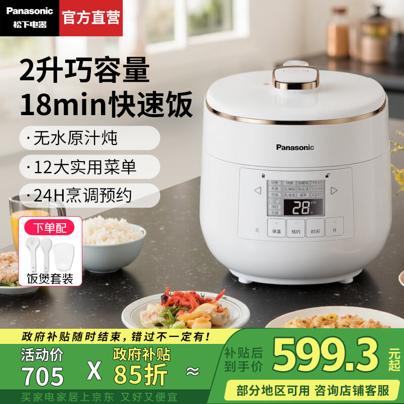 松下(Panasonic)【国家补贴】电压力锅小型家用高压锅智能高压电饭锅多功能迷你1-2人高压电饭煲全自动2L容量P20A1 【 2L 】高压无水烹饪P20A1-W
