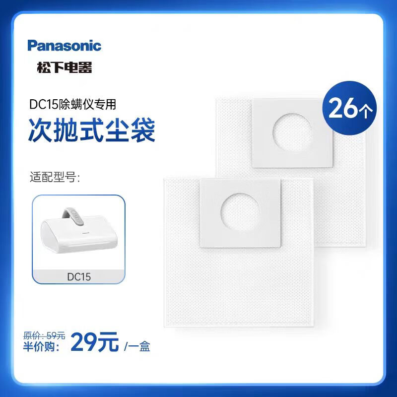 松下MC-DC15除螨仪吸尘原装耗材配件次抛尘袋(集尘纸袋) DC15除螨仪尘袋