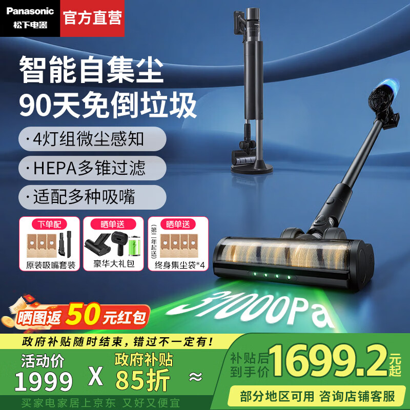 松下(Panasonic)【国家补贴】新款吸尘器手持家用大吸力除尘除螨大功率无线自动集尘除尘机猫毛发防缠绕长续航AC40 灰黑色【自动集尘+90天免倒垃圾】AC40K