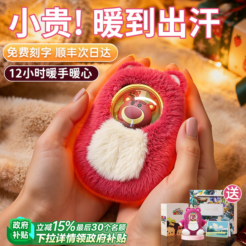 奢姿2025新款迪士尼正版授权草莓熊暖手宝充电宝女生暖宝宝生日礼物送女朋友暖手神器无水电暖宝便携式 迪士尼正版【草莓熊+兔子毛绒套】