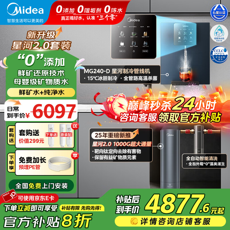 美的(Midea)星河2.0净水机净矿净水器母婴直饮0阻垢厨下RO反渗透矿物质直饮加热一体机管线机套装 星河2.0净水器+星河管线机+全自动清洗前置