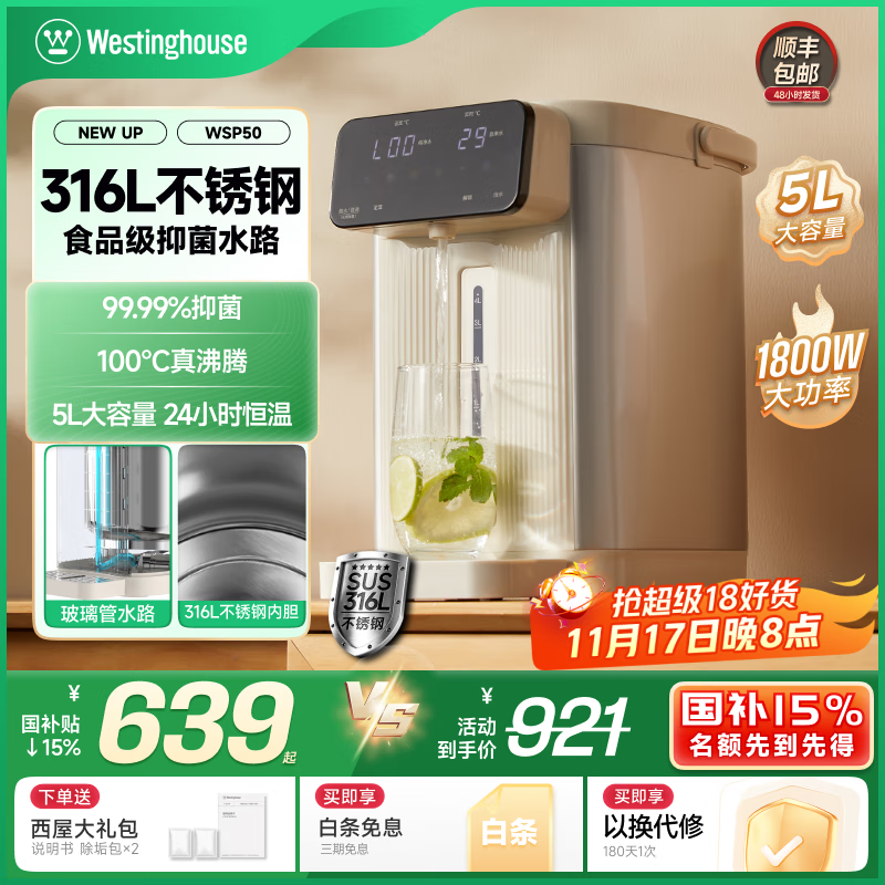 西屋恒温电热水瓶2025新款家用开水瓶智能保温一体316L不锈钢大容量水壶P50 5L
