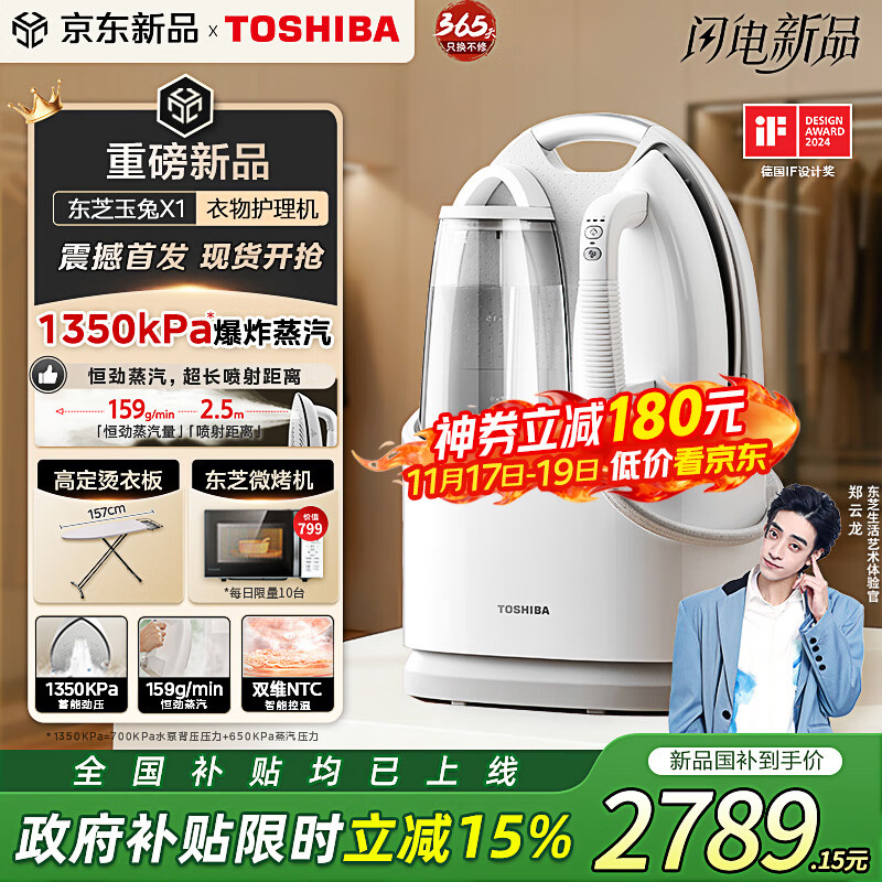 东芝(TOSHIBA)玉兔X1熨烫护理机干衣物护理机蒸汽高端挂烫机家用智能温控家用手持蓄压增压蒸汽站快速除皱电熨斗