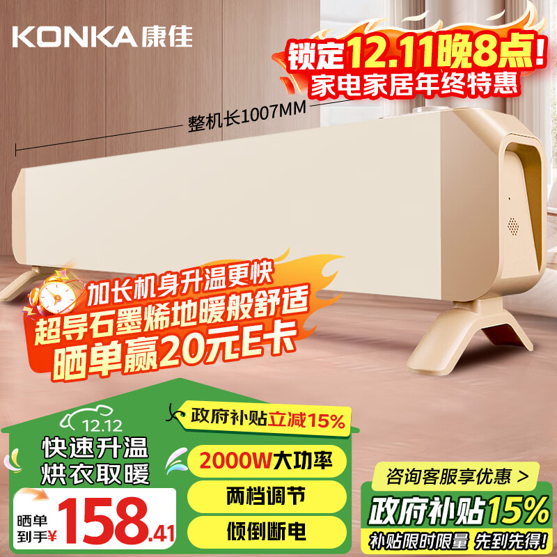 康佳(KONKA)石墨烯踢脚线取暖器家用电热电暖器浴室速热暖风机烤火炉大面积电暖气地暖全屋升温KDNT-2001-P