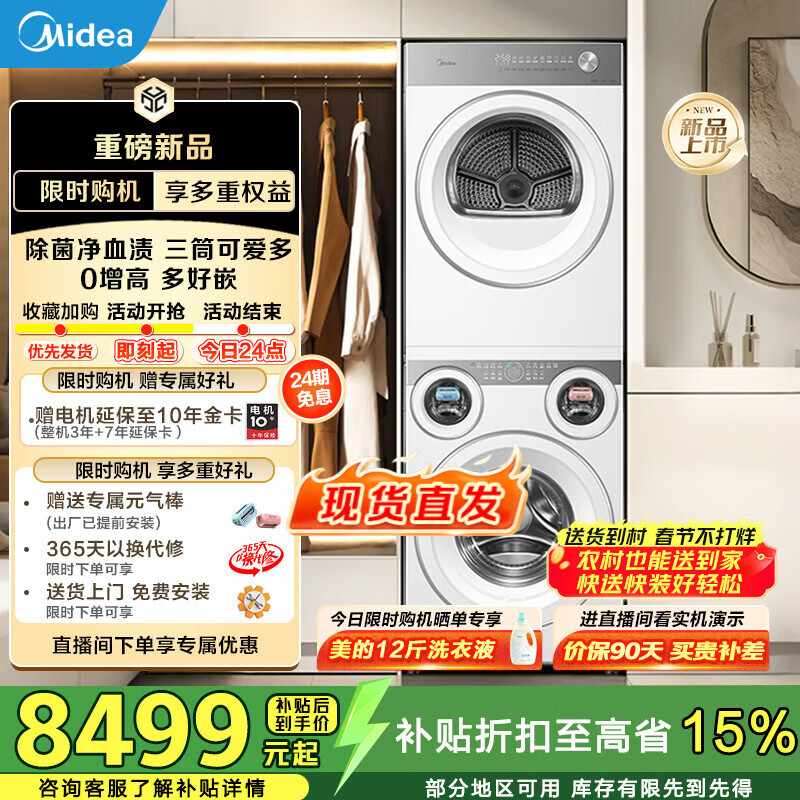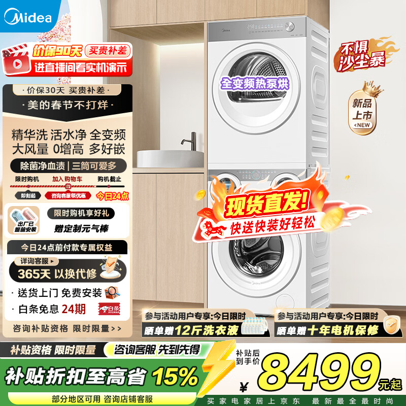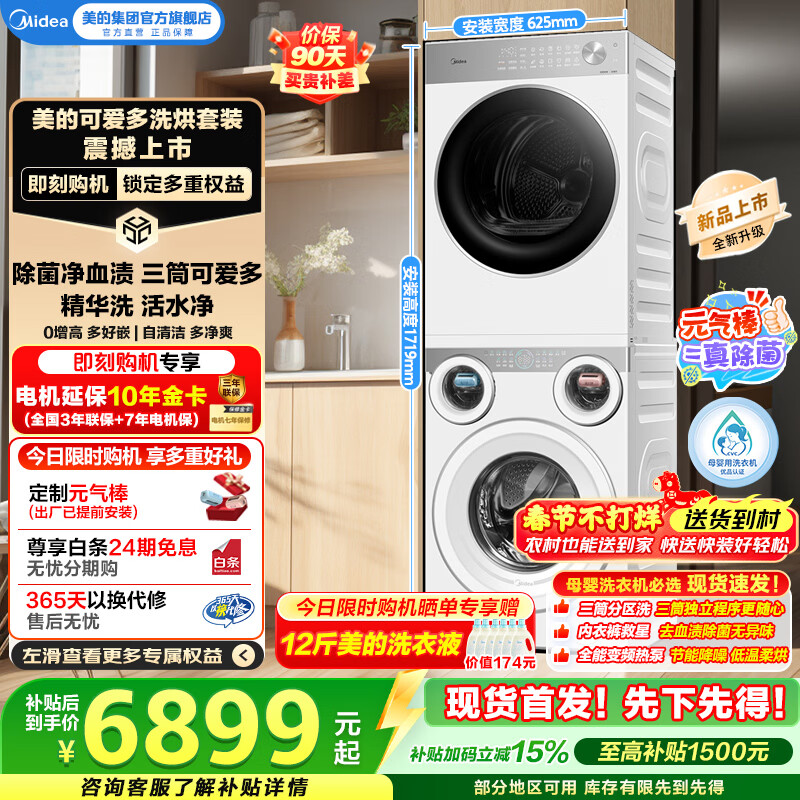 美的(Midea)可爱多三筒分区洗多桶洗烘套装全自动 11kg滚筒洗衣机+10kg变频热泵烘干机 三桶智能投放紫外线除菌家电补贴 MG11GGEX+MH10HEX