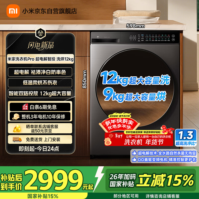 米家【超电解新品】小米滚筒洗衣机洗烘一体机家用全自动12公斤大容量国家补贴一级能效XHQG120MJ105