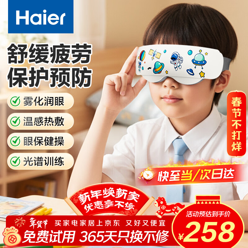 海尔(Haier)儿童眼部按摩仪雾化蒸汽眼罩青少年学生护眼仪点振热敷干眼润眼仪光训按摩器儿童节日礼物HL-E3M
