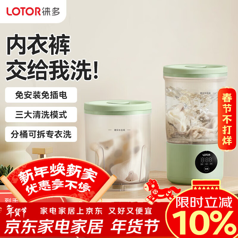 LOTOR徕多洗衣杯迷你内衣内裤专用洗衣机袜子机小型宿舍洗衣杯便携式袜子双杯二合一洗衣杯双杯款