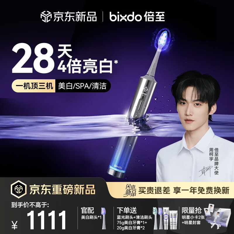 倍至【周柯宇同款】蓝光美白电动牙刷成人 AI智能化W66蓝光刷【礼物版】新年生日年会情人节新年礼物