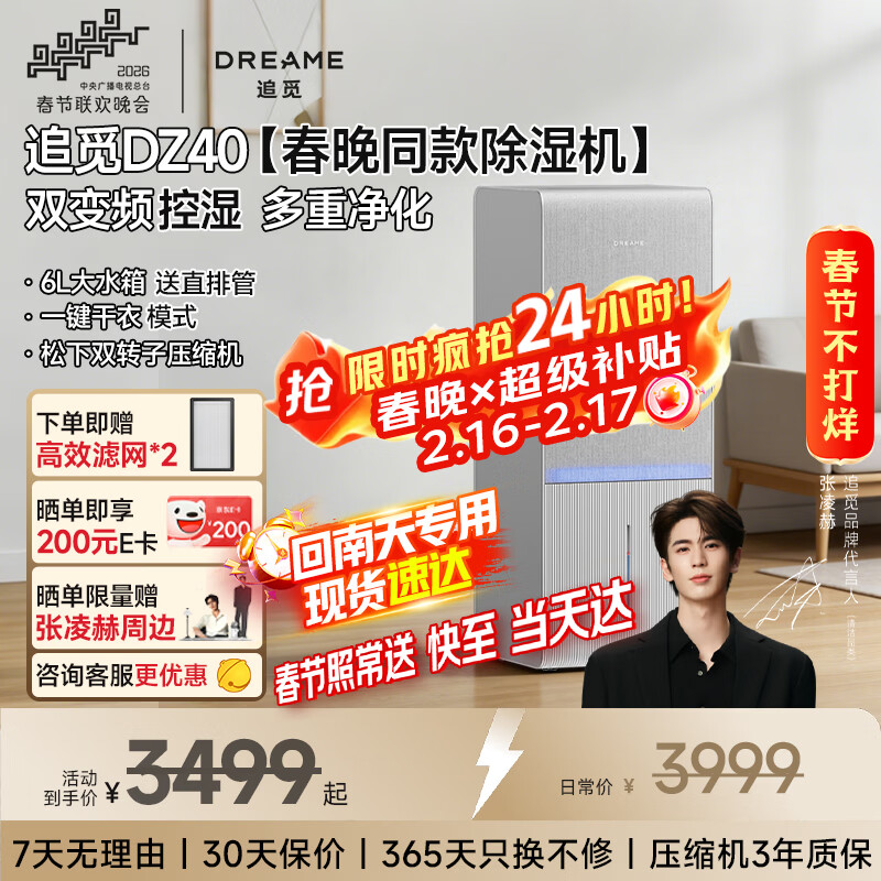 追觅【春晚同款】除湿机DZ40轻音变频净化除湿一体机40L/天除湿量家用干衣抽湿机别墅地下室除湿器