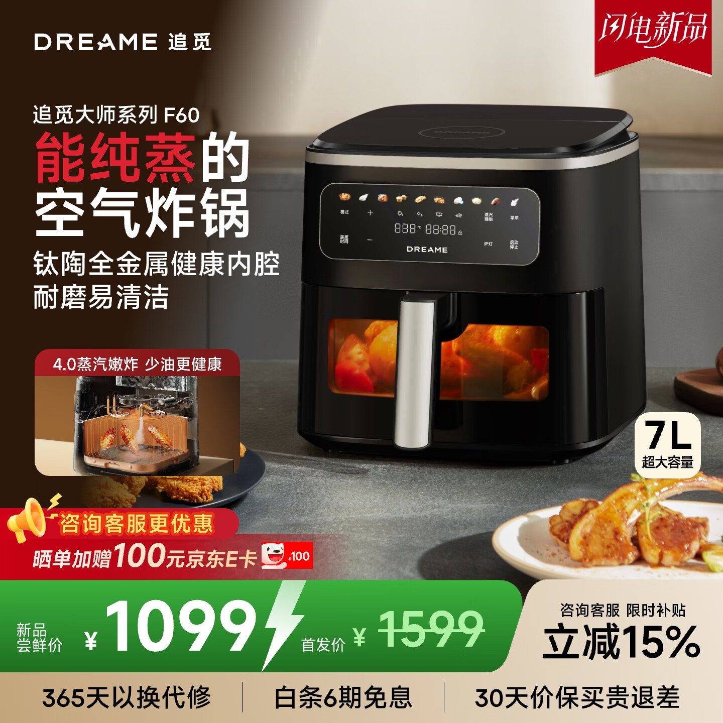 追觅空气炸锅蒸烤一体 大师系列F60 上下双热源免翻面 7L家用大容量 0氟钛陶烤盘 全金属内腔 国家补贴