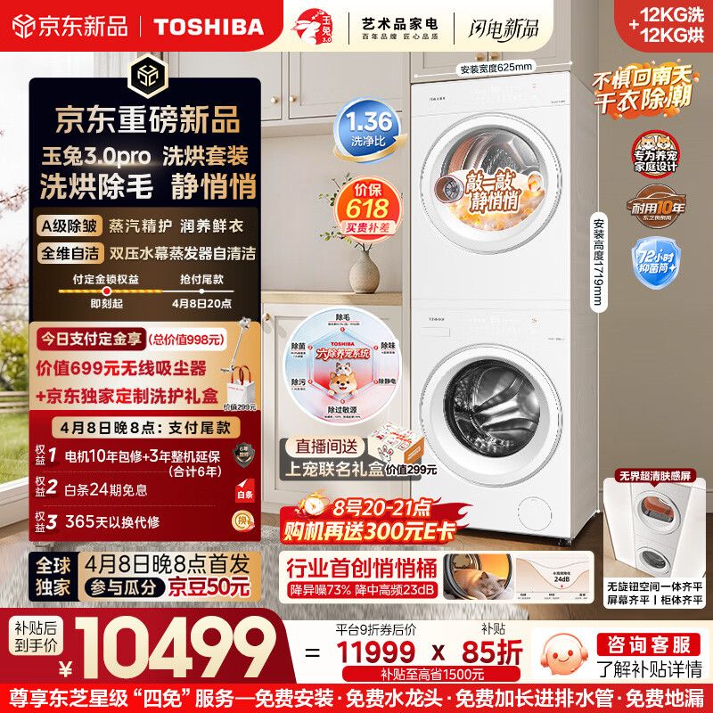东芝(TOSHIBA)玉兔3.0pro 洗烘套装12+12kg 1.36高洗净比悄悄筒 全自动 以旧换新 12T186BW+12T186BW