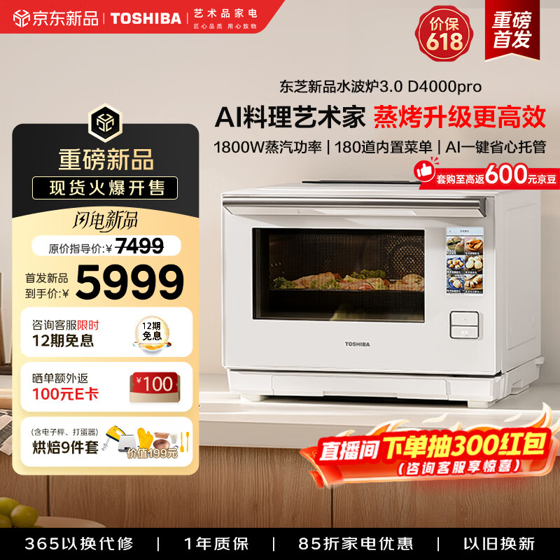 东芝水波炉D4000pro新品轻奢3.0水波炉微蒸烤一体机AI智能石窑烤蒸烤一体微波炉ER-D4000CW