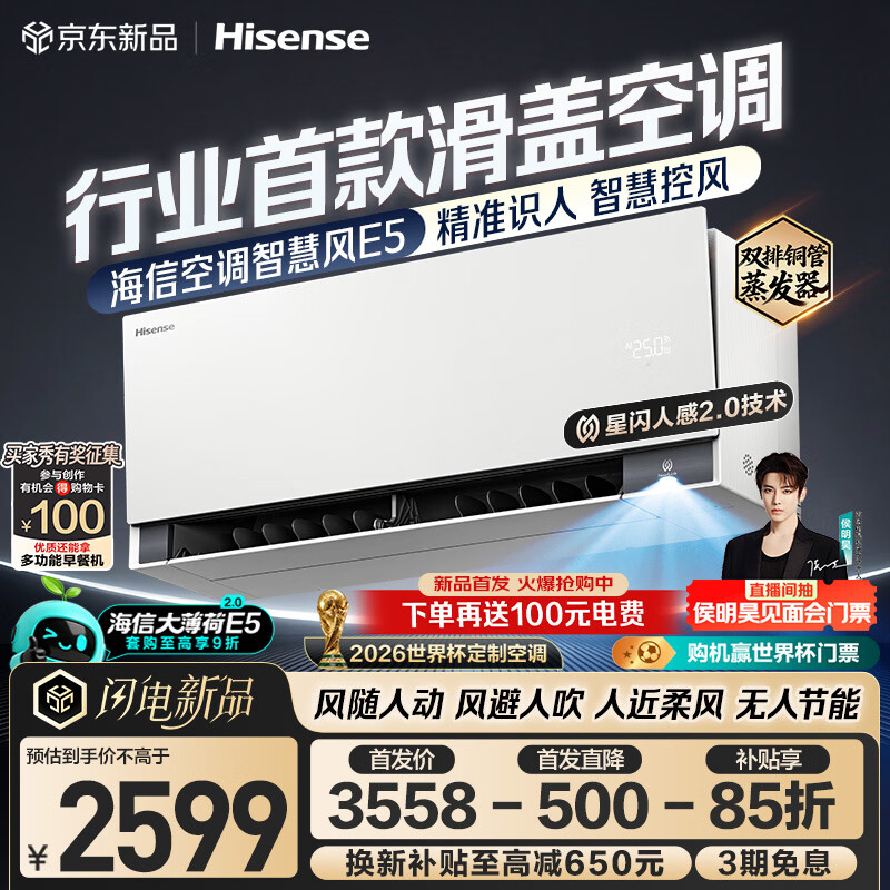 海信空调智慧风E5 星闪人感精准识人智慧控风 大1.5匹挂机双排纯铜管蒸发器大薄荷2.0KFR-35GW/E5E1-1