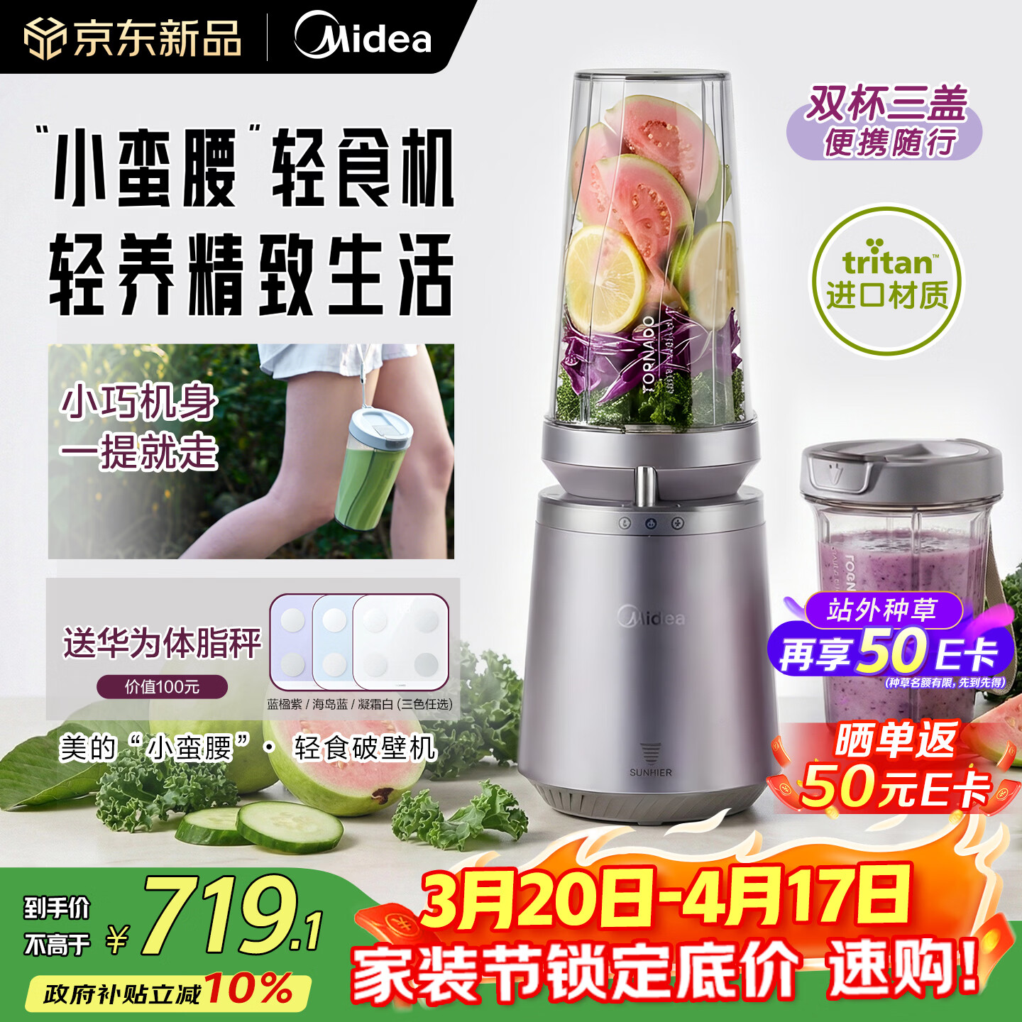 美的(Midea)小蛮腰15秒轻食破壁机 家用小型全自动大功率果蔬榨汁料理机【650ML+350ML双杯】MJ-Health01紫