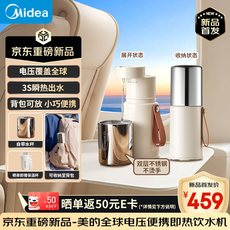 美的(Midea)便携即热饮水机全球通用宽电压出差旅行烧水壶智能触控免安装可折叠电热水壶直饮机MK-JRB03