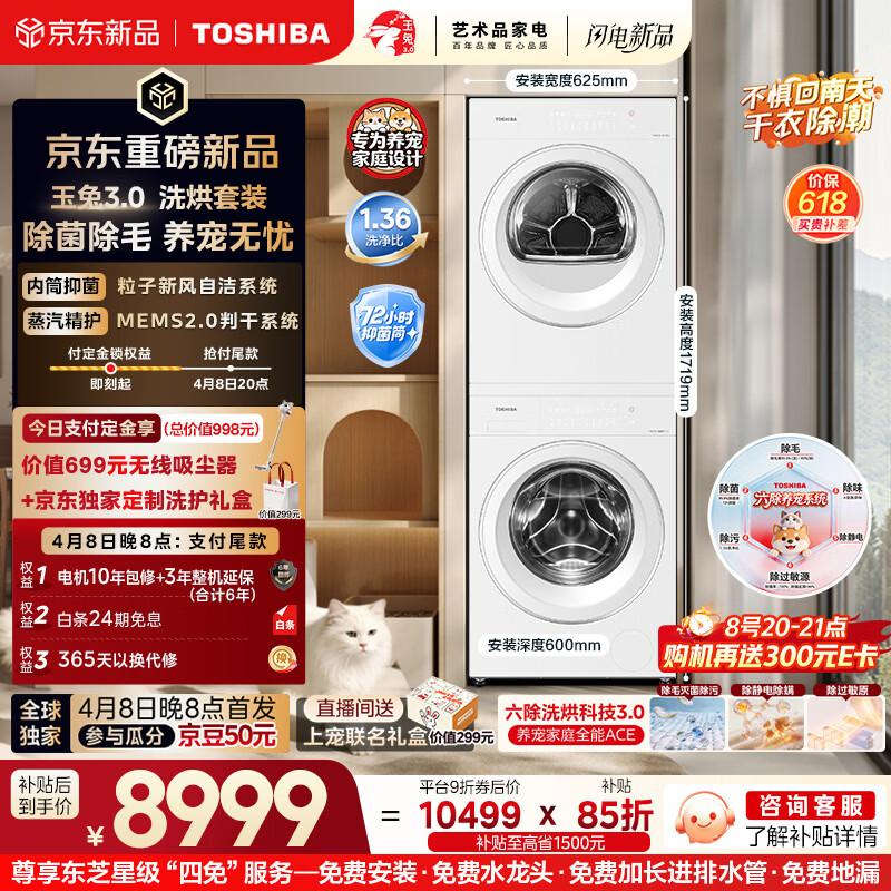 东芝(TOSHIBA)玉兔3.0洗烘套装10+10kg 蒸汽精护 粒子除毛烘 DG-10T186BW+DH-10T186BW
