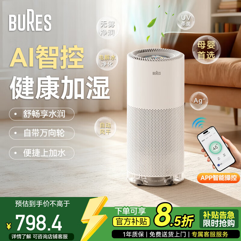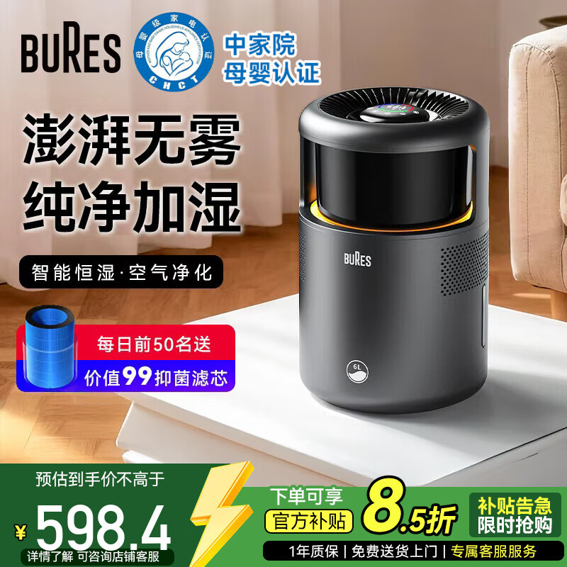 bures无雾加湿器家用卧室空气加湿净化一体机鼻炎适用大容量客厅母婴幼儿除菌办公室落地蒸发式高端送礼 【健康首选】电解水净化-旗舰升级版
