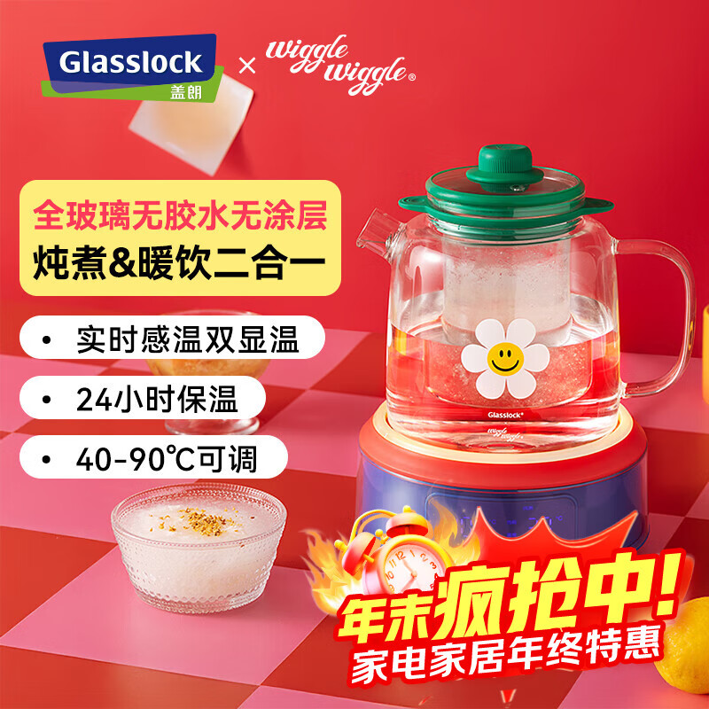 GLASSLOCK盖朗全玻璃养生壶wigglewiggle联名保温炖煮一体全自动恒温家用办公室多功能煮茶壶花茶壶恒温水壶 wigglewiggle联名款 1.5L 全玻璃花茶壶