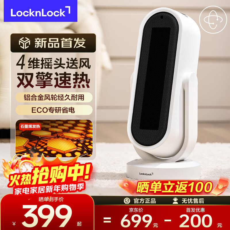 乐扣乐扣(locknlock)暖风机石墨烯取暖器电暖器电热取暖器电暖气家用小型婴儿 铝合金离心风轮