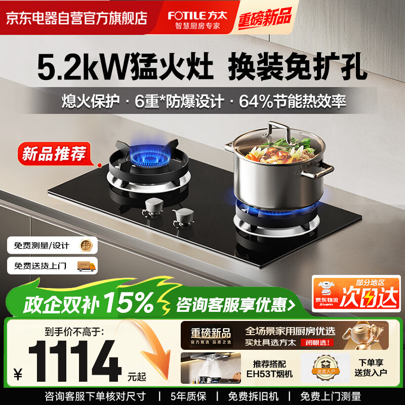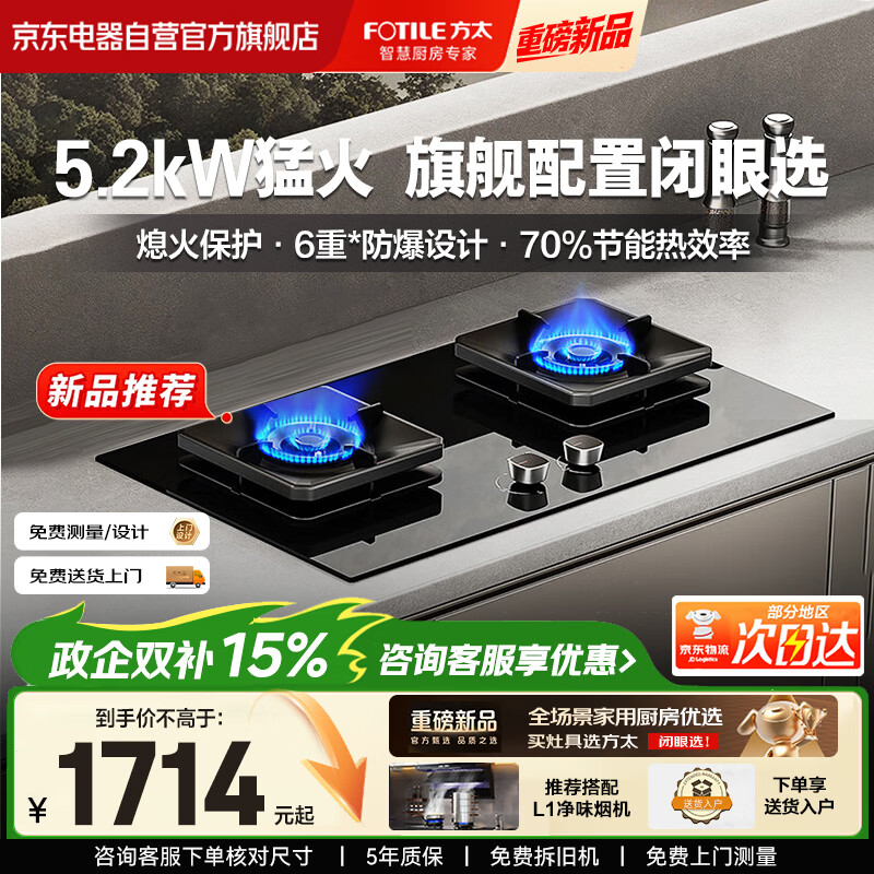 方太【新升级70%热效率】燃气灶天然气 家用嵌入 5.2kW*猛火燃气灶 70%高热效 JZT-TF57B
