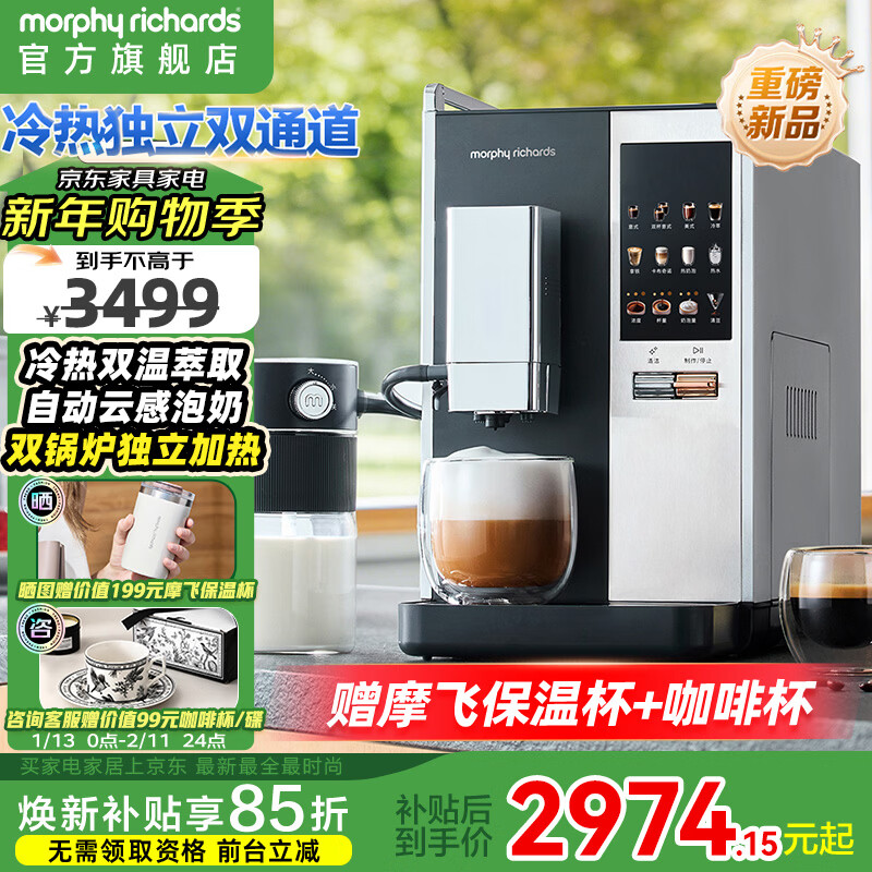 摩飞电器(Morphyrichards)全自动咖啡机冷热双萃研磨一体式家用20Bar泵压意式美式咖啡现磨自动打奶泡MR7006 深空灰