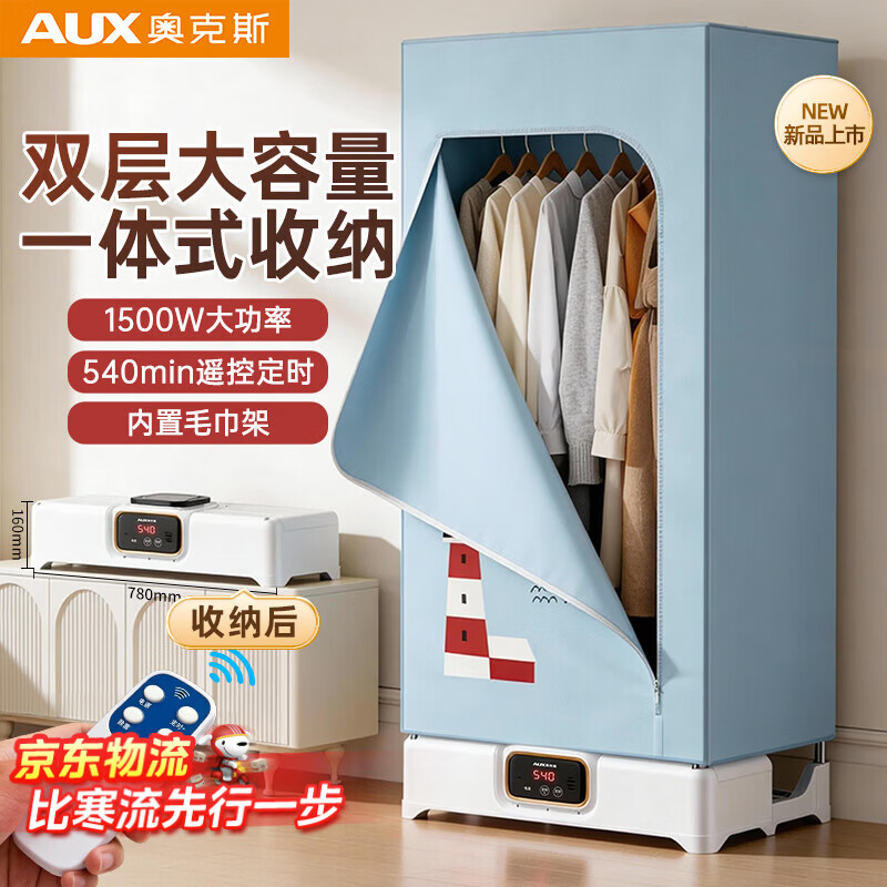奥克斯【一体收纳+电子遥控】干衣机烘干机家用烘干衣服神器小型旅行婴儿衣物内衣杀菌消毒护理机大容量