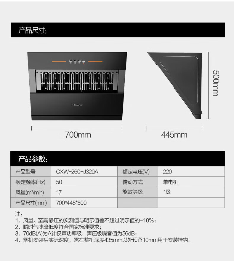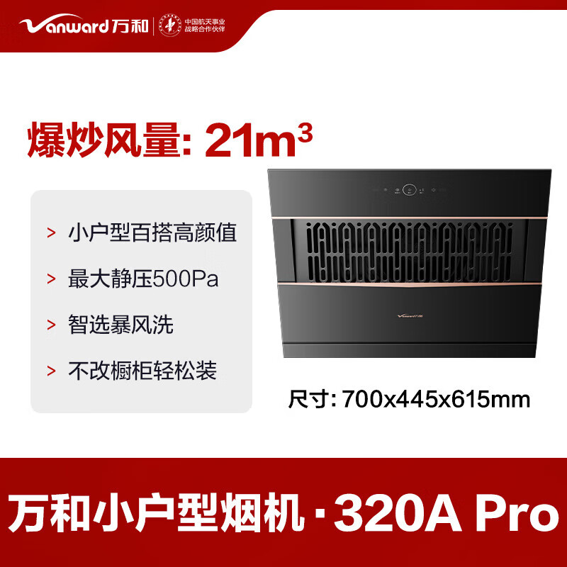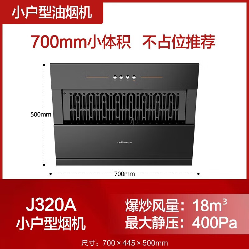 万和(Vanward)J320A抽油烟机70公分厨房家用小型大吸力侧吸式壁挂式不锈钢 J320A 17m³/min 黑色