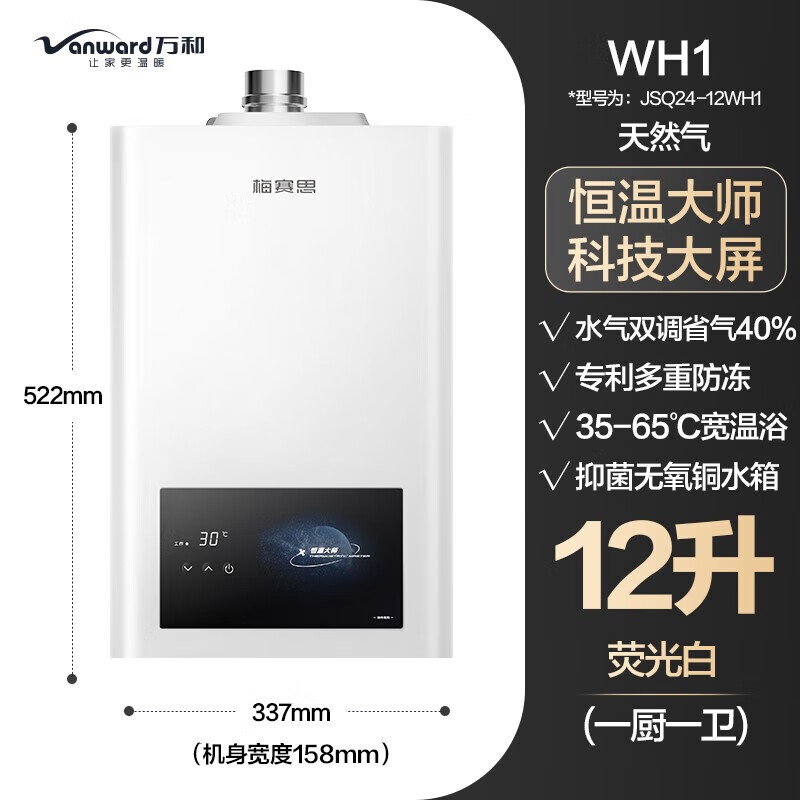 万和(Vanward)家用天然气液化气恒温铜水箱燃气热水器WH1/A3PRO JSQ24-12WH1荧光白 天然气