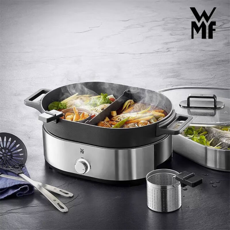WMF德国福腾宝电煮锅家用电火锅鸳鸯锅分体式电热锅多功能大容量 银色