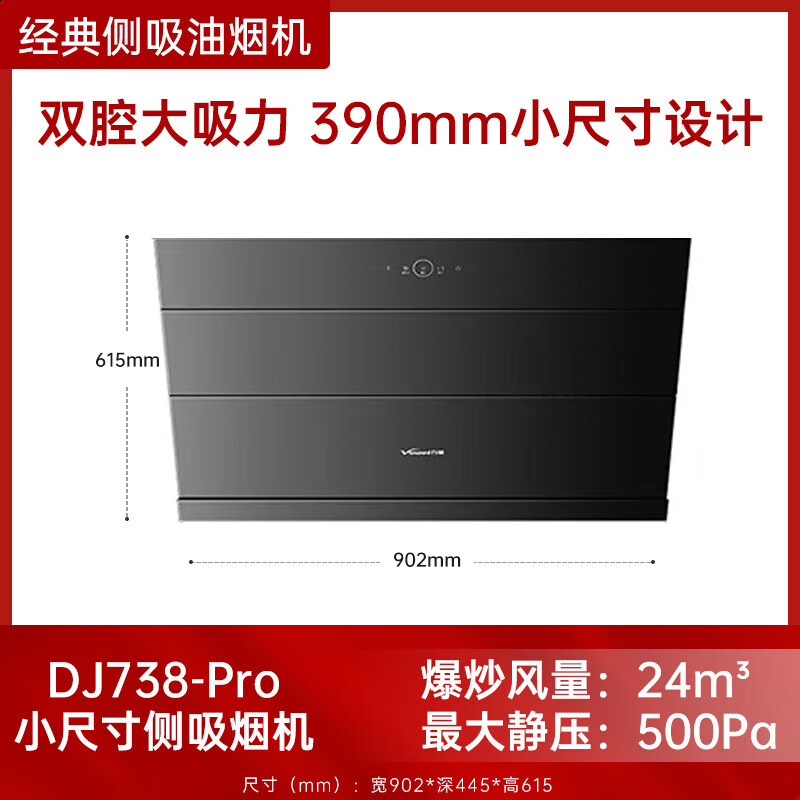 万和(Vanward)抽油烟机厨房家用大吸力侧吸油烟机大风量738pro 24m³/min 黑色 带其它配件