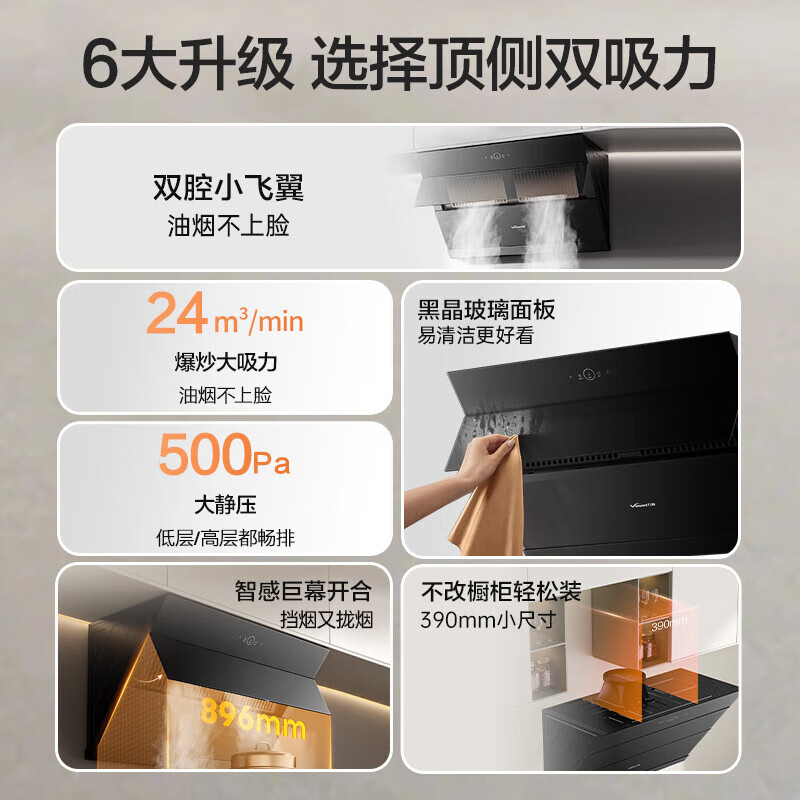 万和(Vanward)[]顶侧双吸抽油烟机大吸力超薄家用厨房856升级 24m³/min 黑色 带其它配件 [25年新款]