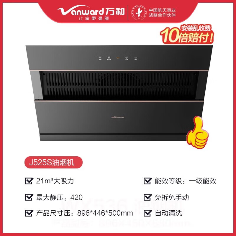 万和(Vanward)[以旧]油烟机家用厨房大吸力侧吸式脱排吸油烟机525S J525S 21m³/min 黑色 全国联保