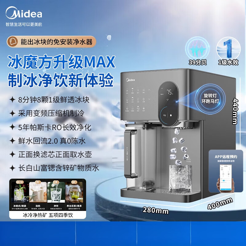 美的(Midea)制冰块净水器家用台式净饮饮水机冰魔方MAX新品 JLB3799T-RO_冰魔方MAX