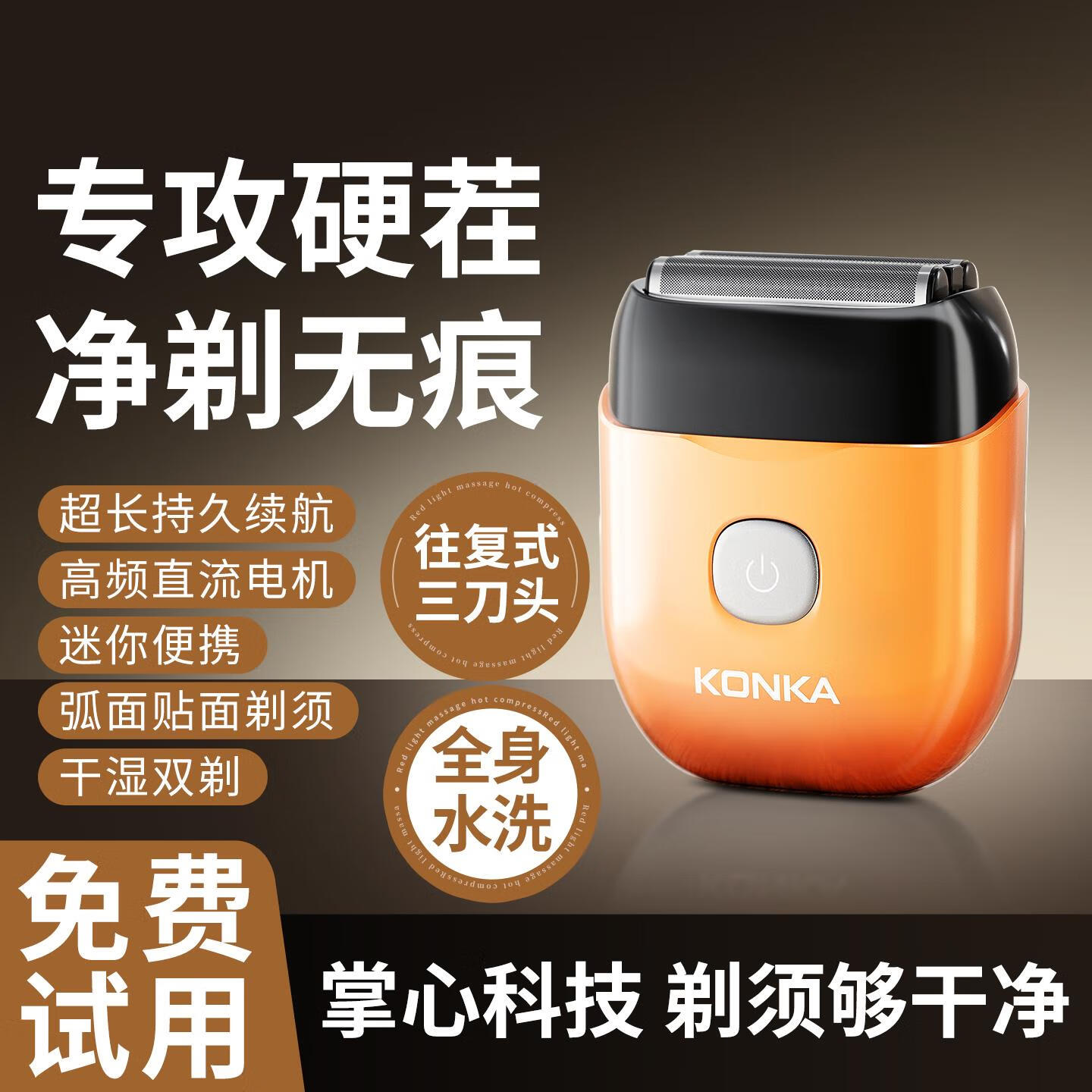 康佳(KONKA)往复式剃须刀男士电动迷你便携刮胡刀官方2025年新款旗舰 活力橙+往复式三刀头+强劲动力