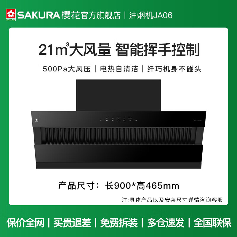樱花(SAKURA)抽油烟机大吸力侧吸油家用厨房大吸力排脱自动清洗店 JA06 20m³/min 黑色 说明书