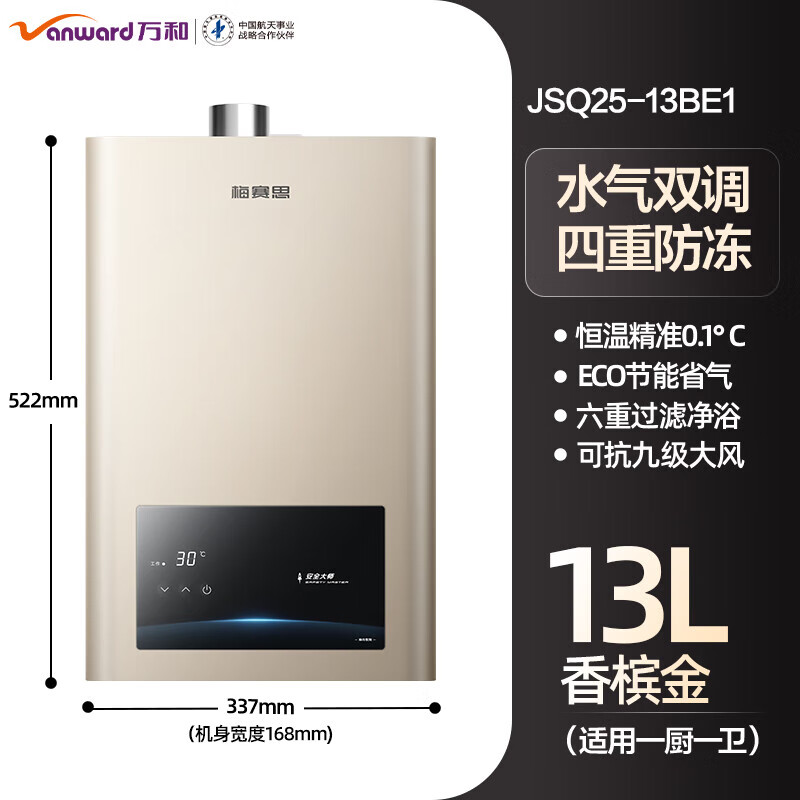 万和(Vanward)[]家用恒温气液化气热水器BE1/A3PRO店 JSQ25-13BE1 13L香槟金 天然气