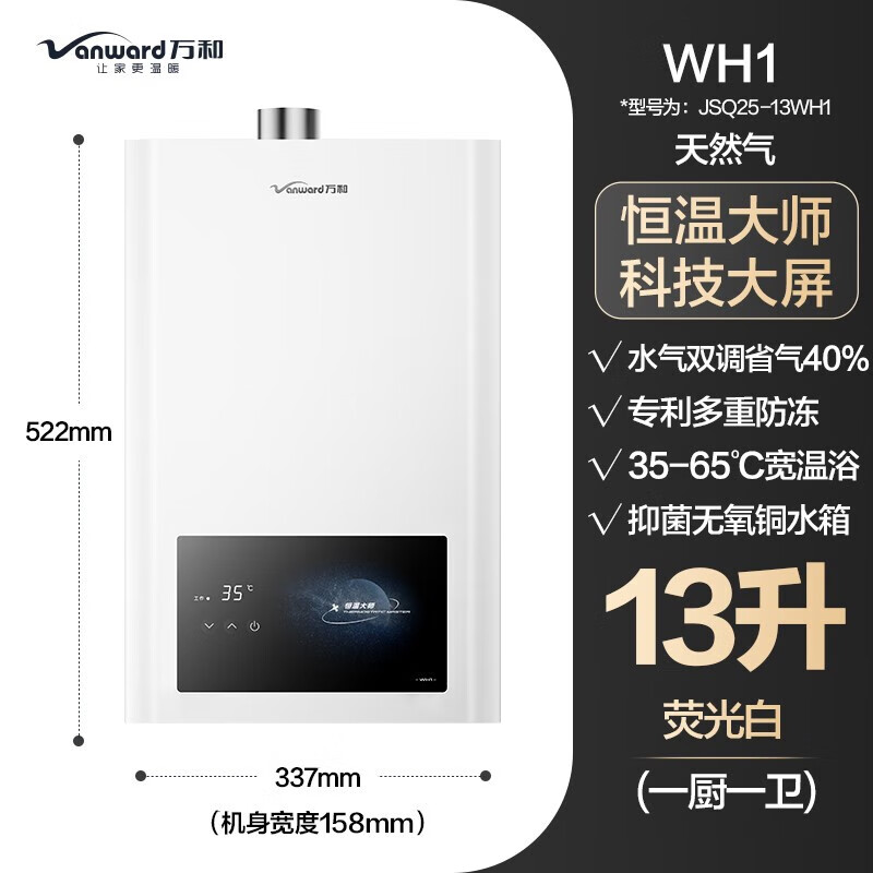 万和(Vanward)[] 家用气液化气恒温铜水箱燃气热水器WH1/A3PRO JSQ25-13WH1荧光白 天然气