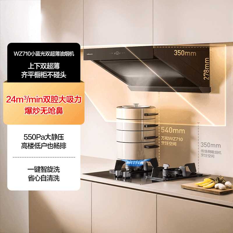 万和(Vanward)[]小双翼超薄平嵌家用厨房大吸力抽烟机抽风机WZ710 wz710 24m³/min 黑色