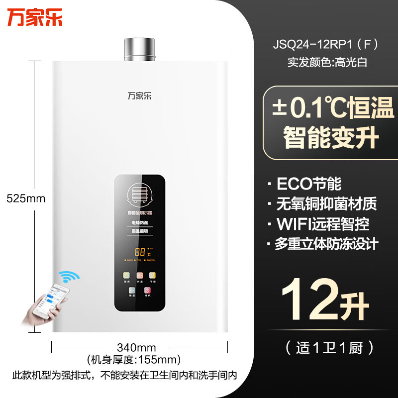 macroT/RP1节能恒温燃气热水器家用洗澡气煤液化气 JSQ24-12RP1(F)高光白 WIFI智控 天然气