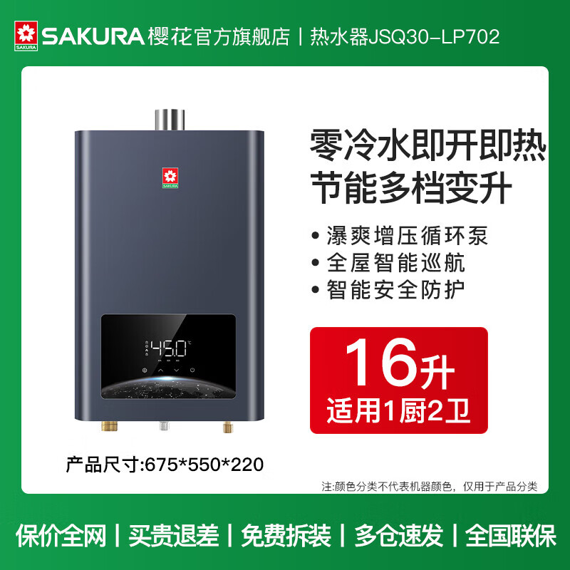 樱花(SAKURA)|燃气热水器家用气零冷水13L即热智能恒温LP702 JSQ30-LP702蓝色 天然气