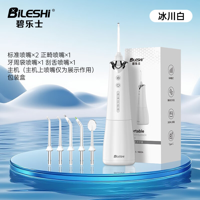 碧乐士冲牙器家用便携式电动正畸专用水牙线牙齿缝清洗 冰川白【300ML大水箱+5种模式】