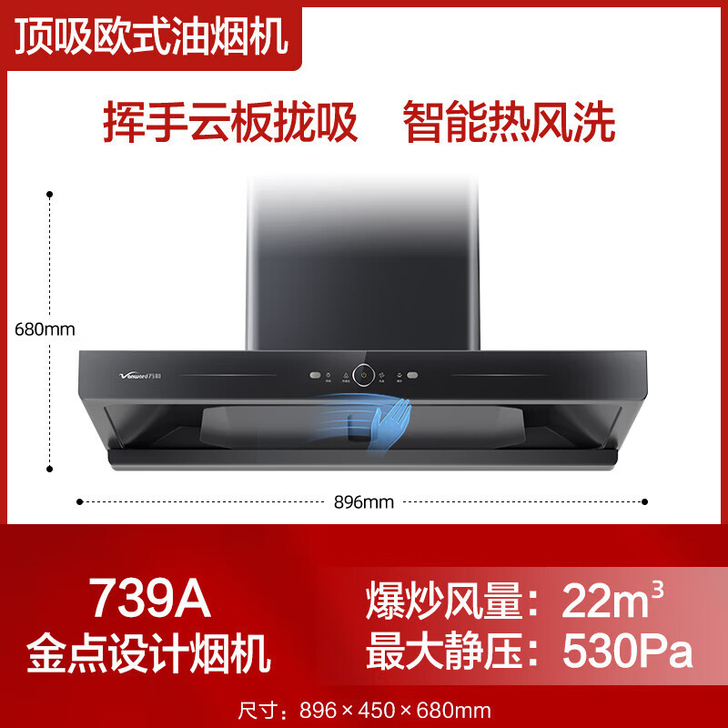 万和(Vanward)[]小双翼家用厨房大吸力自清洗顶吸式吸烟机WX536 X739A 22m³/min 黑色 带其它配件