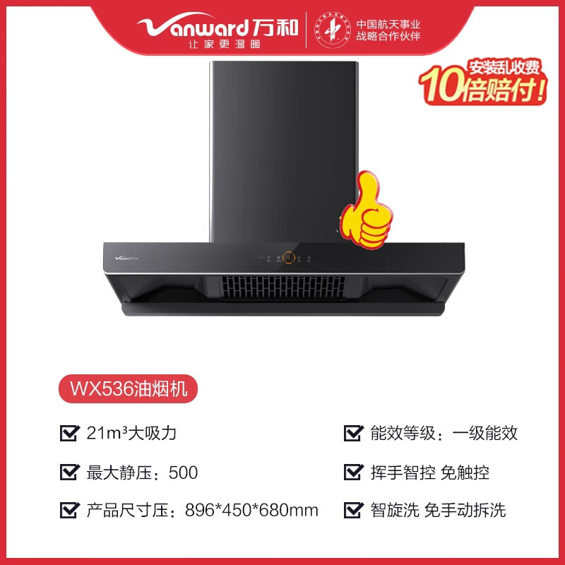 万和(Vanward)[以旧换新]抽油烟机家用厨房油烟机顶吸式大吸力店 WX536 21m³/min 黑色 全国联保 免费