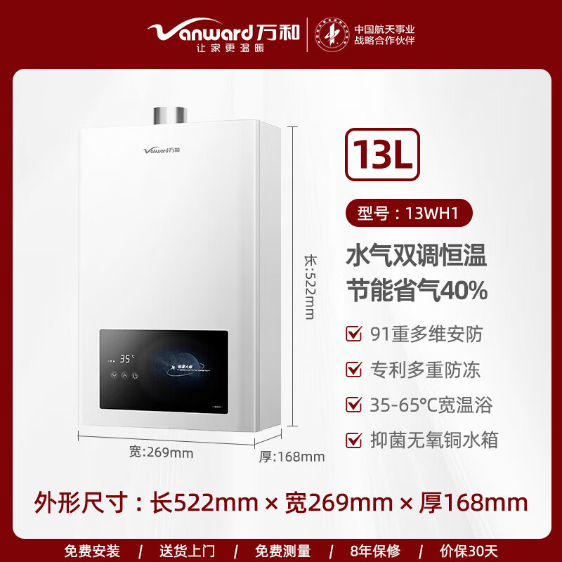 万和(Vanward)气燃气热水器家用洗澡恒温液化气双调以旧换新备 JSQ25-13WH1荧光白 免费安装+全国联保 天然气