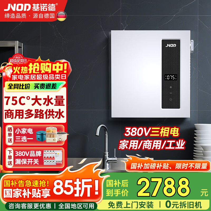基诺德(JNOD)德国即热式电热水器商用380V三相电大功率中央供水家用智能恒温顶喷浴缸工业别墅后厨房洗碗神器 24000W 【75°C钣金白款】
