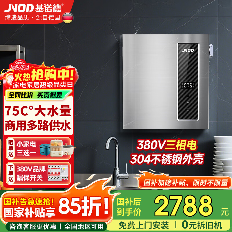 基诺德(JNOD)德国即热式电热水器商用380V三相电大功率中央供水家用智能恒温顶喷浴缸工业别墅后厨房洗碗神器 24000W 【75°C不锈钢款】