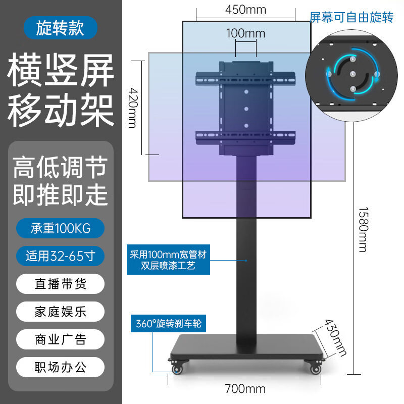 双幼可移动电视机支架落地挂架适用于小米创维海信一体机架子带轮推车 自由旋转款32-65寸直播支架 可横竖屏自由旋转