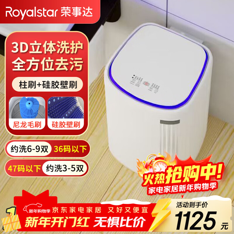 荣事达全自动免拆鞋带洗鞋机家用宿舍小型懒人刷鞋神器 洗脱一体擦鞋机洗袜机鞋衣两用洗鞋机刷鞋机 洗鞋机 洗烘一体 6kg 【热烘除菌螨+全硅胶壁刷】