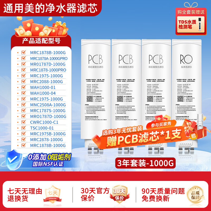 净贝洁通用美的科慕COLMO净水机器滤芯CWRC800-B18/B38/16/CWRC700-B105 3年无忧大套餐[1000G多型号通用】+TDS
